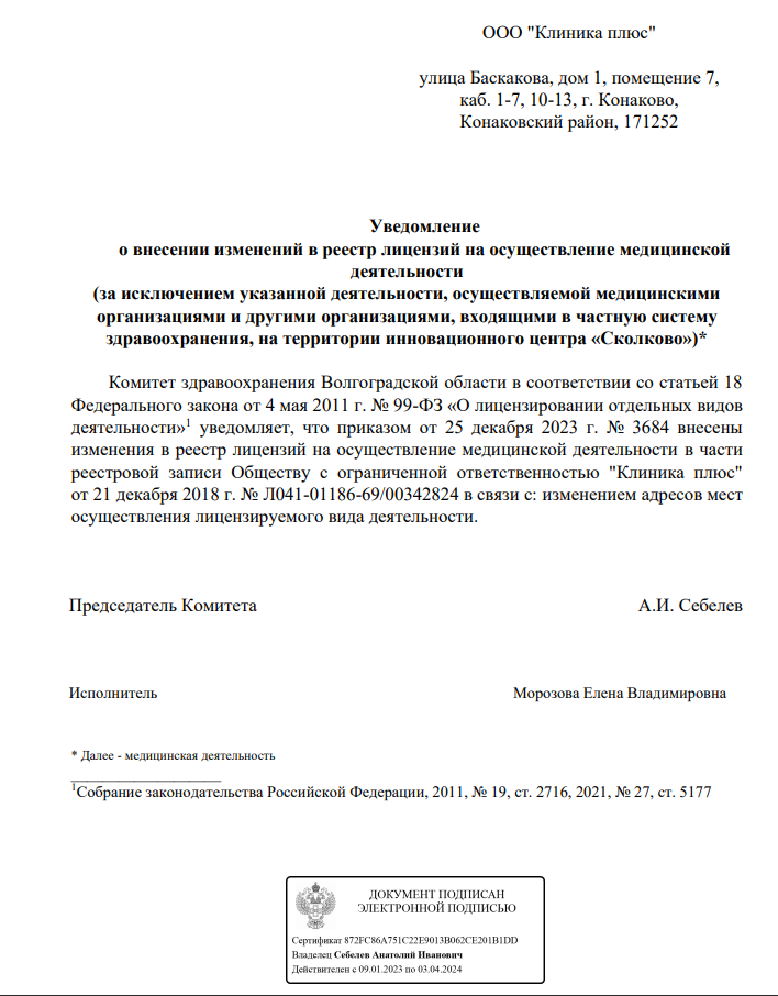 * Медицинская деятельность оказывается по адресу лицензии