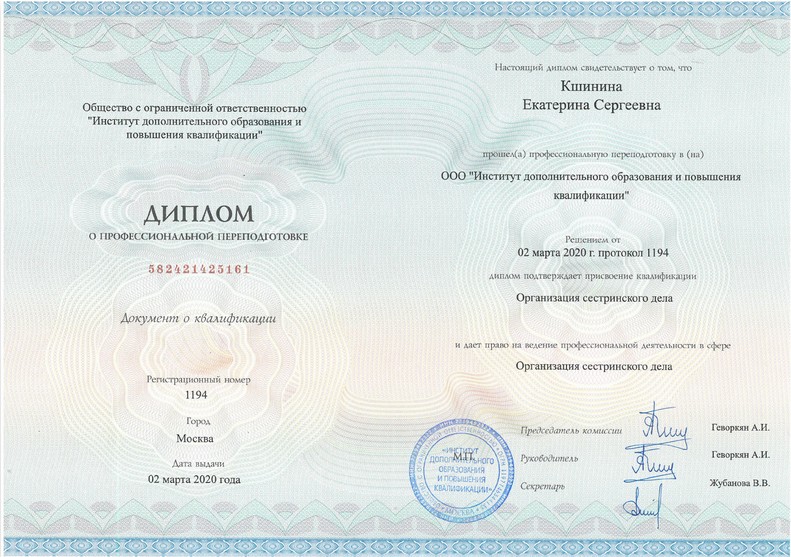 Придерживаюсь высоких стандартов профессионализма и этики. Как старшая медсестра, я обеспечиваю слаженную работу медицинского персонала, организую процессы так, чтобы каждый пациент чувствовал внимание и поддержку на каждом этапе лечения.